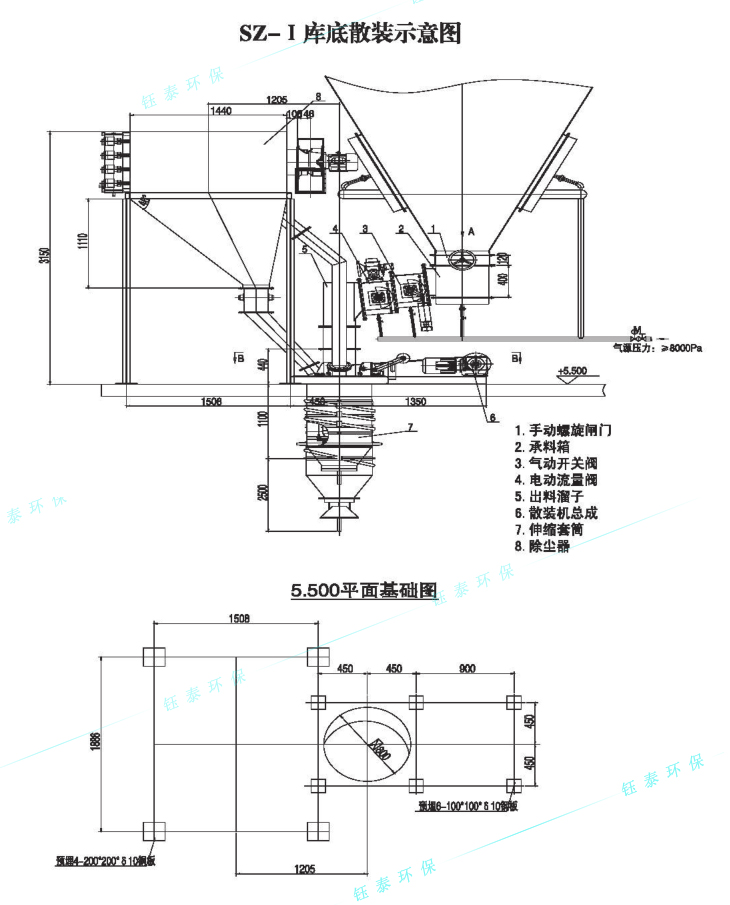 服务电话:13091153069(同微信) 汽车散装机是将库内的粉料或骨料自动无尘装车的设备。汽车散装机主要由手动棒阀,电动扇形阀,卷扬装置,伸缩卸料装置、收尘软管,电容式限位开关,电控系统等部分组成。当汽车进入位置后,打开棒阀相应的棒条数量。按住控制柜的“下降钮”,下料头到位后会自动断开升降电机电源,按“装车钮”进入卸料状态,辅助配套设备会相应开始工作,卸料产生的灰尘通过进料斗,由伸缩收尘软管进入收尘器净化,当下料头的物料装满时,下料头边上升,边报警,上升距离要在装料前设置。若上升距1米,则将时间继电器的时间调为T=1N。在上升过程中装料始终在进行,当下料头满时,再重复上述动作,到达料满位置后,按停车钮,使电振机反制动,或关闭扇形阀下料停止工作,其它设备相应停止工作。停车后可按上升按钮让下料斗离开物料一定距离,确保运输工具的移动,再对准第二个卸料工位。直到整个料仓装满为止